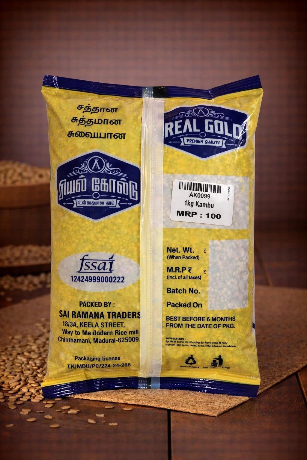 Kambu, also known as pearl millet, is a highly nutritious traditional grain widely used in South India. It is rich in fiber, protein, iron, and essential minerals that help improve digestion and boost overall health. Kambu is naturally gluten-free, making it a healthy choice for people with gluten sensitivity. It provides long-lasting energy and helps maintain body strength throughout the day. This 1 kg pack contains clean, premium-quality grains suitable for preparing porridge, dosa, roti, koozh, and other healthy recipes.