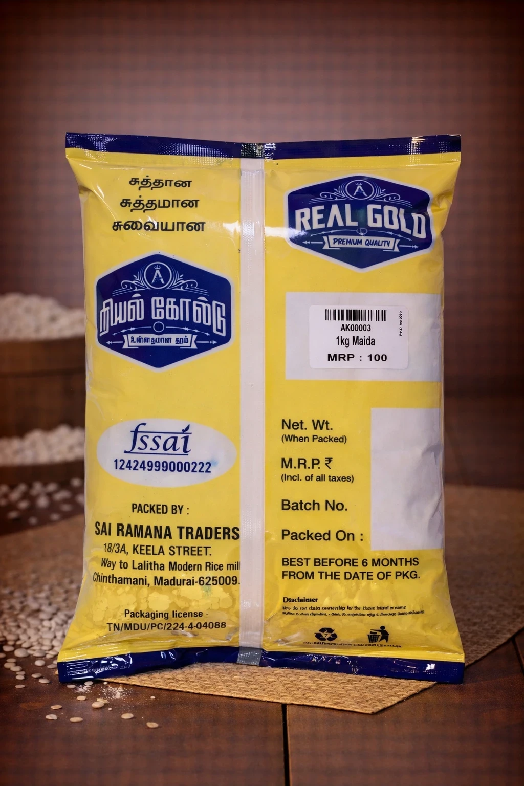 Maida is a finely milled, refined wheat flour known for its smooth texture and bright white appearance. Made from high-quality wheat grains, it is carefully processed to achieve a soft and lightweight consistency that blends easily in various recipes. Maida is widely used in Indian kitchens for preparing soft chapatis, fluffy breads, crispy samosas, cakes, biscuits, pastries, and other delicious baked and fried items. Its fine texture helps create light, airy, and perfectly structured dishes every time.