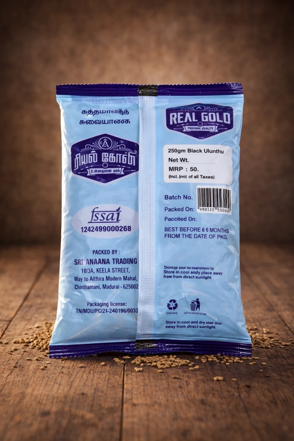 Black Ulunthu (Whole Black Gram) is a highly nutritious traditional pulse widely used in South Indian cooking. Rich in protein, iron, calcium, and fiber, it helps support strong bones, healthy digestion, and overall body strength. This 250gm pack contains premium quality whole black urad dal, carefully cleaned and packed to retain freshness and natural nutrients. It is ideal for preparing dosa, idli batter, kali, ladoo, and various healthy home-style recipes.