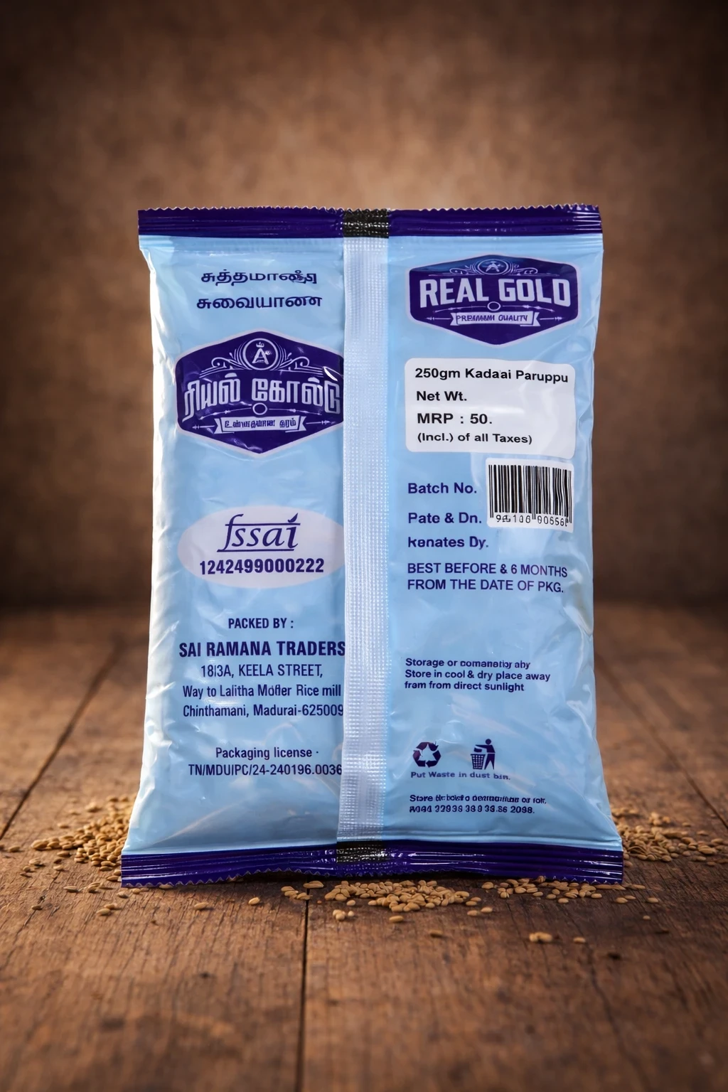 This 250gm pack is ideal for small families and regular home cooking, offering convenience and long-lasting freshness. Kadalai Paruppu cooks evenly with a soft yet firm texture, delivering excellent taste and nutrition in every serving. Free from artificial additives and preservatives, it is a healthy choice for daily meals and festive recipes alike.