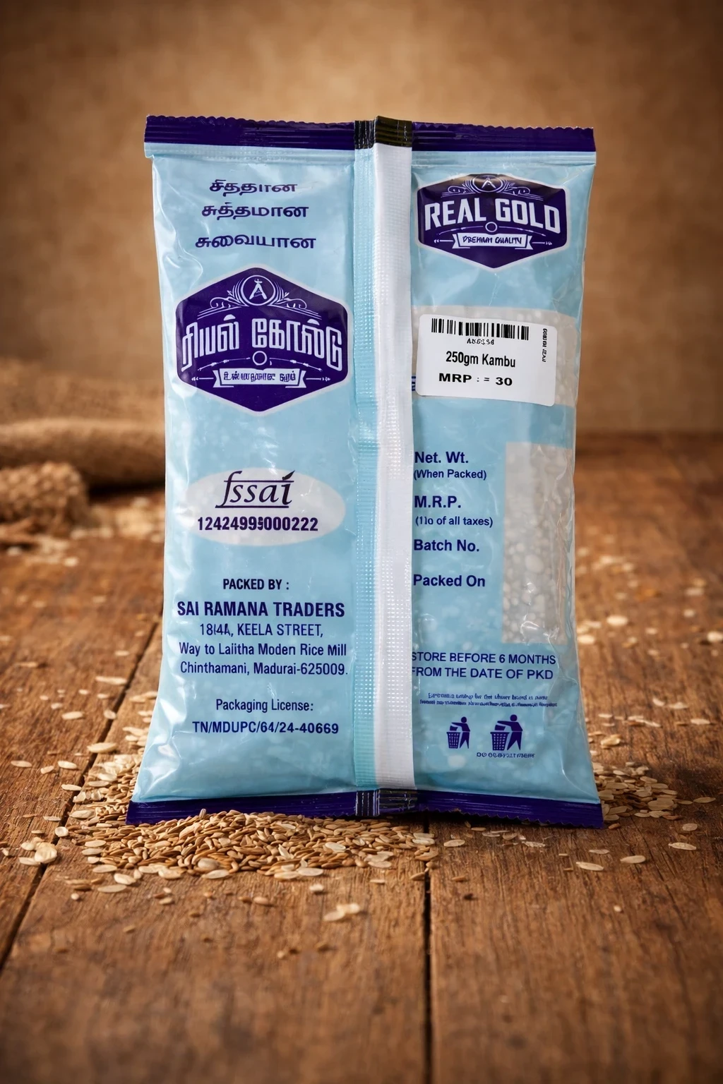 Kambu is widely valued for its high iron, calcium, and antioxidant properties that help strengthen immunity and overall well-being. It has a mild nutty flavor and blends easily into both traditional and modern recipes. Regular consumption may help in managing blood sugar levels and maintaining heart health. Our 250gm pack ensures freshness, purity, and quality in every serving.