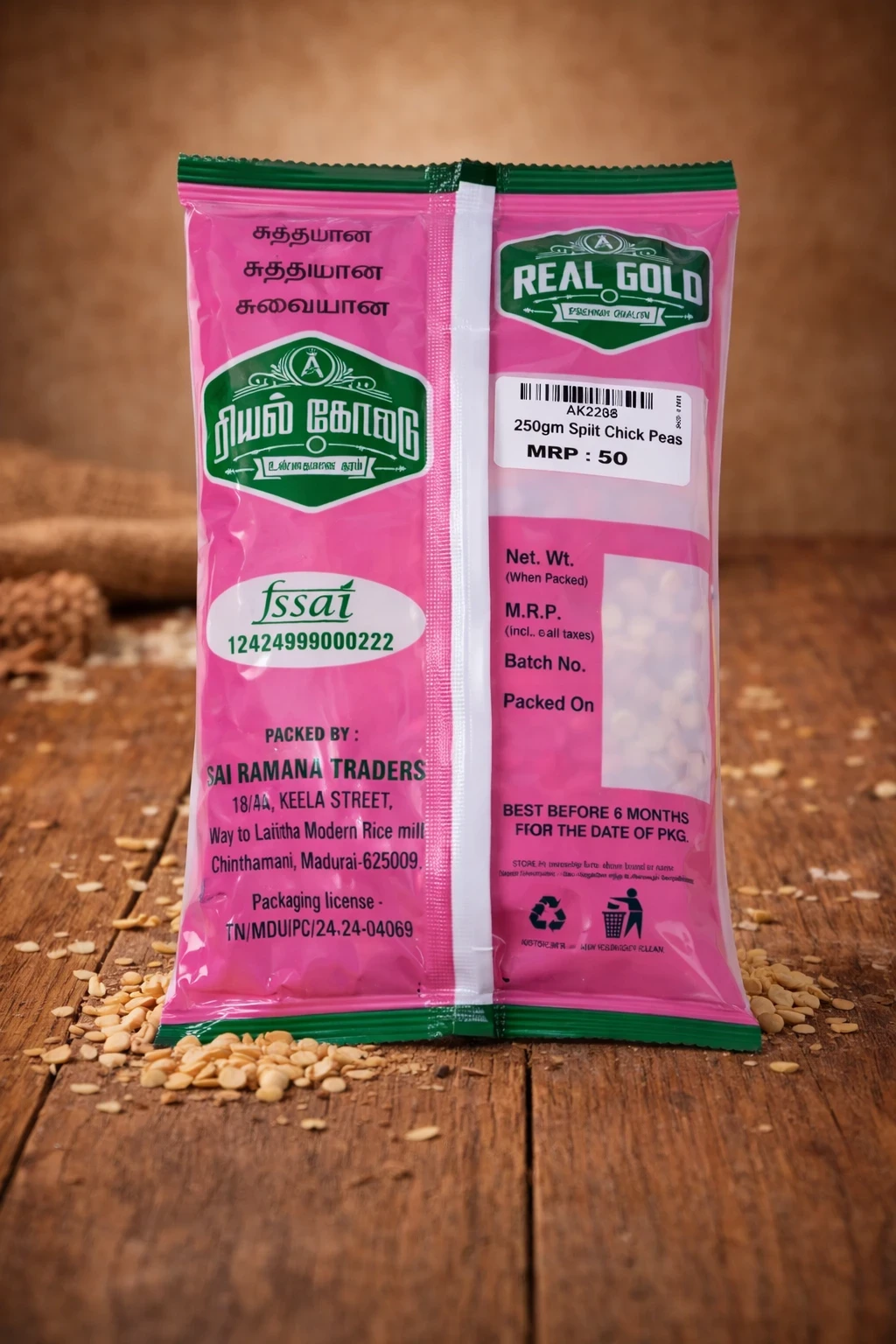 Split Chick Peas (Whole) are a wholesome and protein-rich pantry essential, carefully selected and hygienically packed to ensure freshness and quality. Naturally rich in plant-based protein, dietary fiber, and essential nutrients, these chickpeas are perfect for preparing a variety of traditional and modern dishes. With their mild nutty flavor and firm texture, they cook evenly and absorb spices beautifully, making them ideal for curries, dals, soups, and salads. The 250gm pack size is convenient for small families and regular home cooking needs.