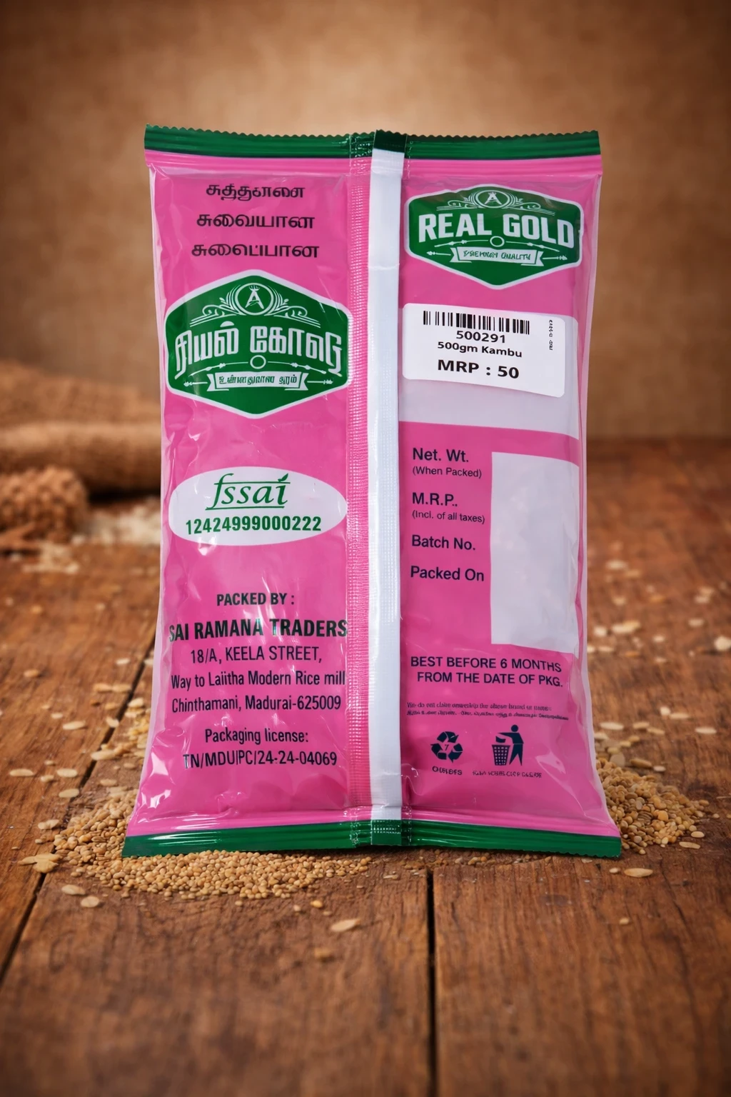 Kambu (Pearl Millet) 500gm is a highly nutritious ancient grain known for its rich fiber, protein, and essential minerals. It is naturally gluten-free and supports better digestion, sustained energy, and overall wellness. Carefully cleaned and packed to retain freshness, Kambu is perfect for preparing healthy dishes like porridge, dosa, roti, and traditional recipes. Ideal for daily consumption, it is a wholesome choice for a balanced lifestyle.