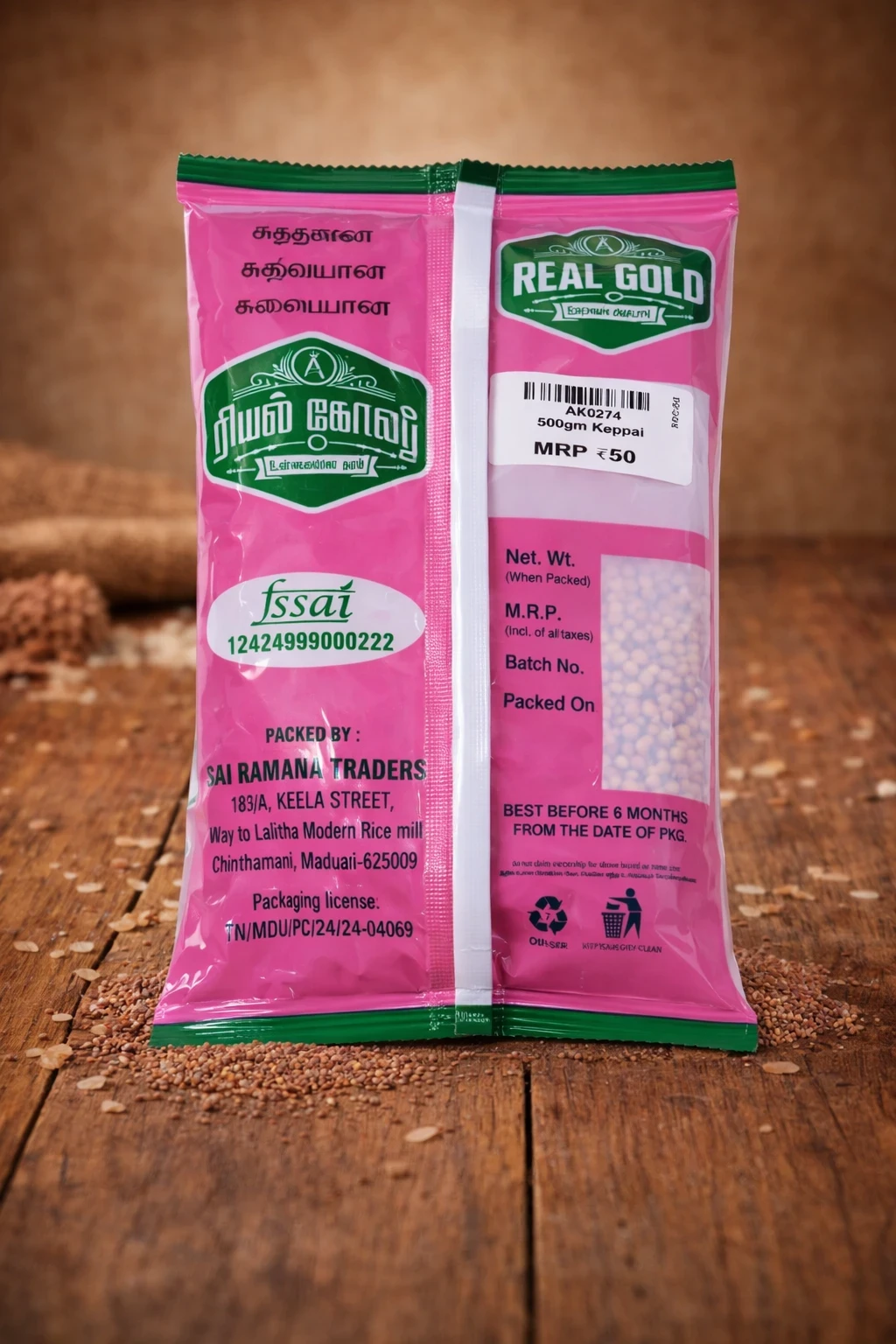 Keppai (Ragi / Finger Millet) is a highly nutritious traditional grain widely used in South Indian households. This 500gm pack contains premium quality, naturally grown Keppai that is rich in calcium, iron, and fiber. It is perfect for preparing healthy dishes like porridge, dosa, roti, and malt. Carefully cleaned and packed to retain freshness, it supports daily energy and overall wellness.