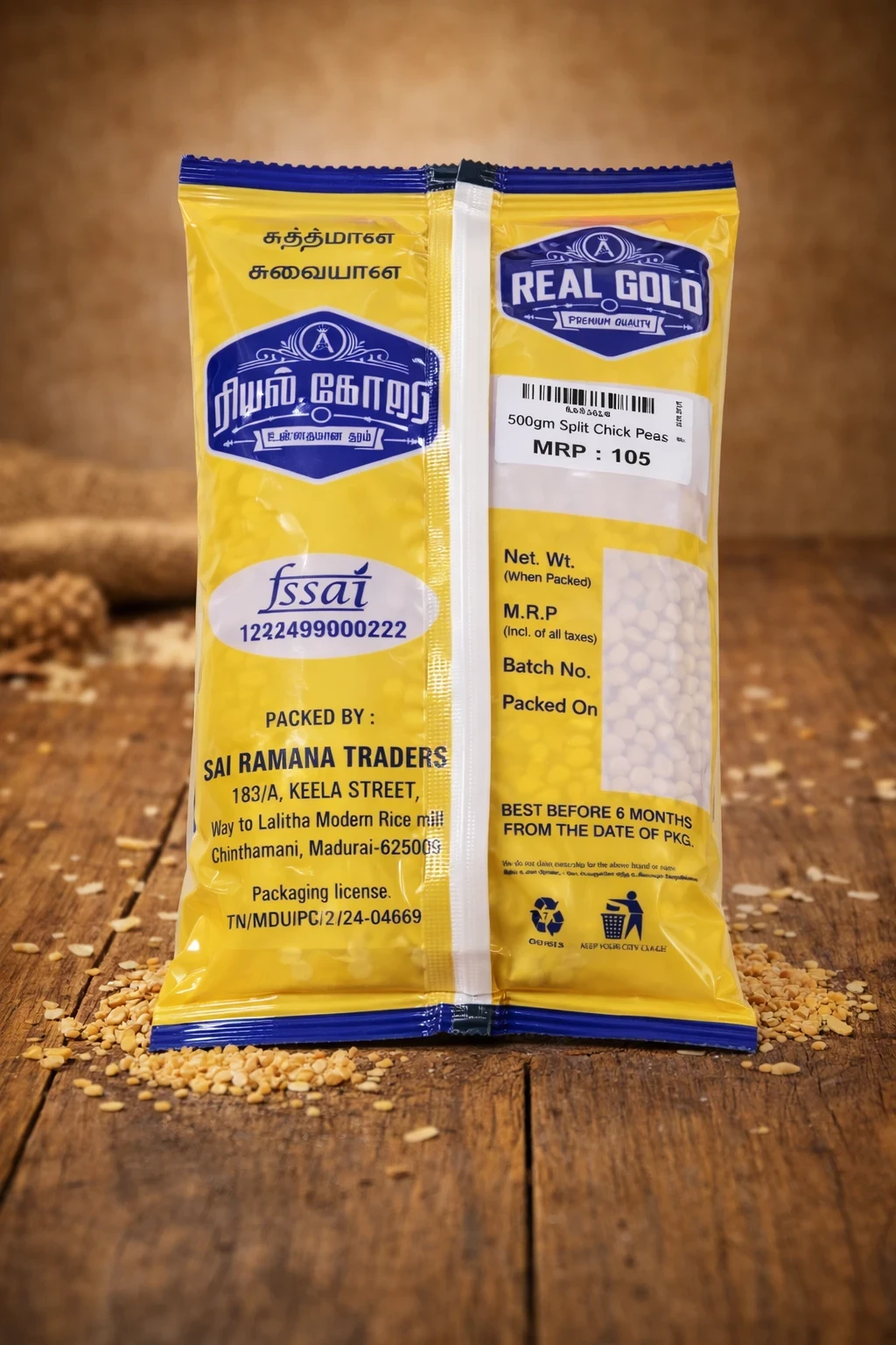 Split Chick Peas (Whole) 500gm are premium-quality, carefully selected legumes known for their rich taste and high nutritional value. These chickpeas are naturally processed and hygienically packed to retain freshness, making them perfect for preparing traditional Indian dishes like chana dal, curries, gravies, and snacks.