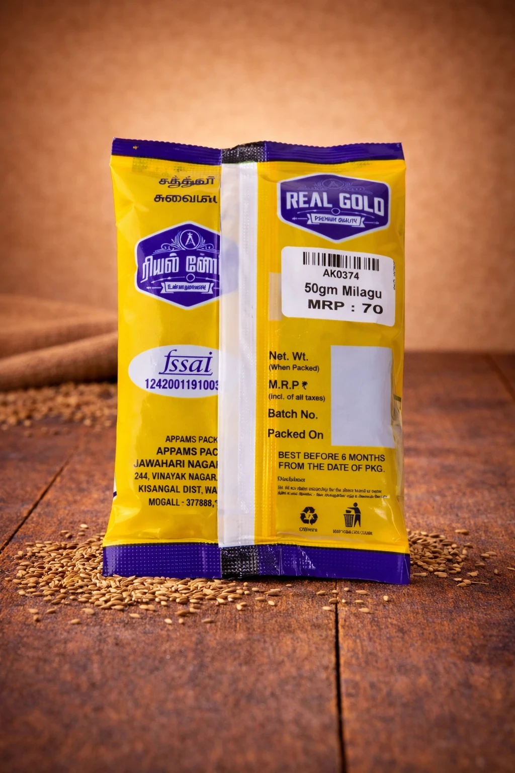 Milagu (Black Pepper) is a premium-quality spice known for its strong aroma and sharp, spicy flavor. Carefully selected and hygienically packed, this 50gm pack ensures freshness and rich taste in every pinch. It enhances the flavor of curries, soups, rasam, and traditional dishes.